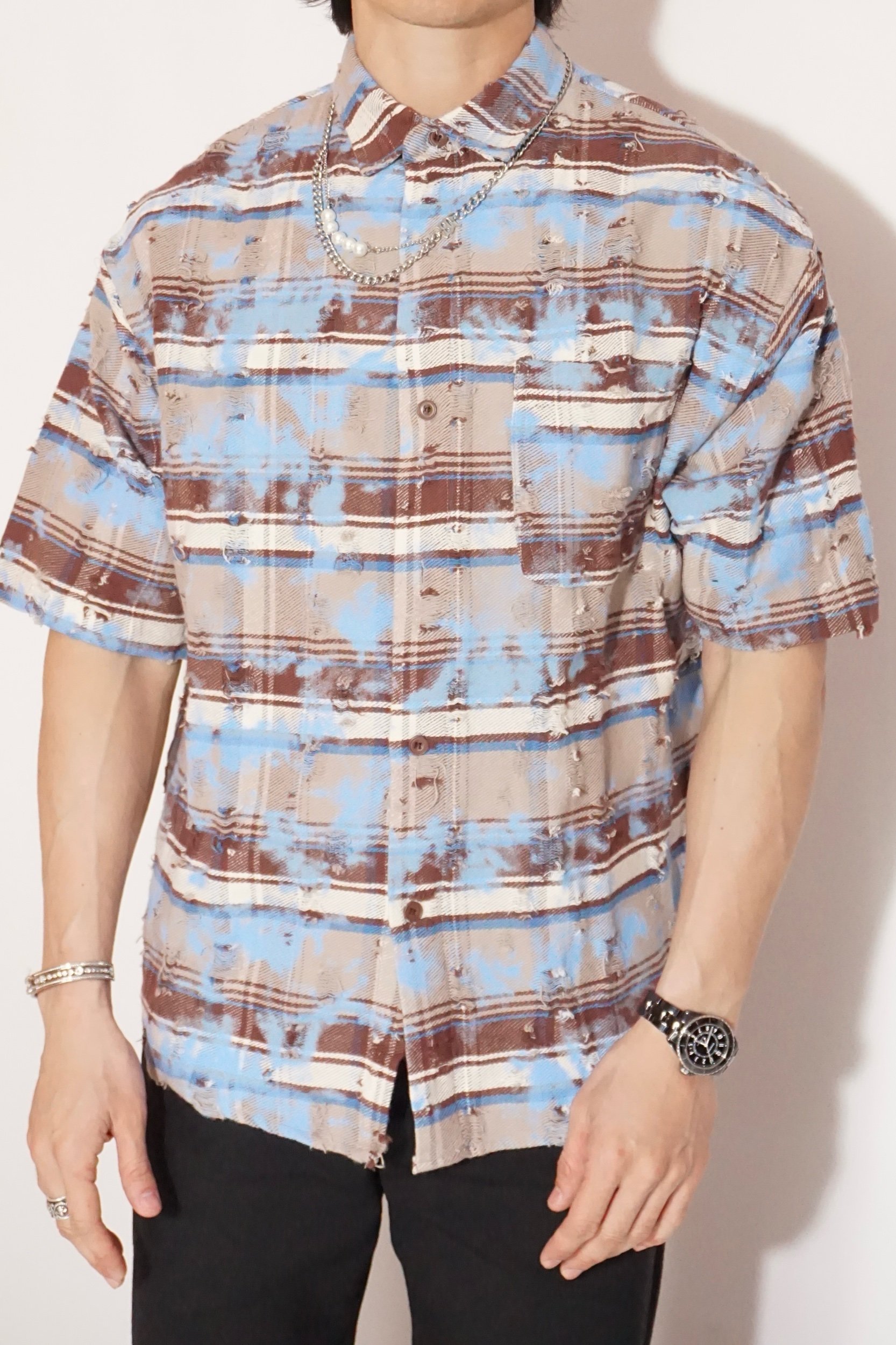 With a tailored fit that flatters the silhouette, the Destructive Blue Cotton Shirt is designed to be versatile. Pair it with your favorite jeans for a laid-back weekend look or dress it up with tailored trousers for a night out.